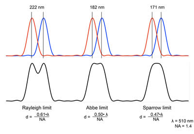 PSF represents a three-dimensional image of a point source and contains information about light wavelength, magnification, all types of aberrations, and spatial inhomogeneity of imaging system (e.g. PSF is different in center vs edge of image). PSF is tightly coupled with the definition of resolution: for two point objects to be “resolved” their PSFs need to be distinguishable. How we define that is up to the user, for example commonly used Rayleigh criterion sets distance between point sources at 0.61*wavelength/NA objective (see more here)